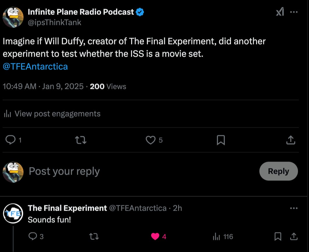 If Will Duffy had invested the same money and effort into debunking the ISS that he did into burning the Flat Earth straw man model, the ISS show would have been canceled by now.
