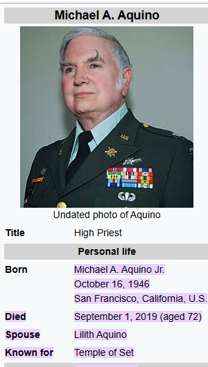 It’s true Aquino founded the Temple of Set, a religious group often labeled “Satanist” by outsiders, but treating that as evidence of secret occult domination or plots is beyond the scope of historical fact and into conspiracy framing. (Wikipedia)