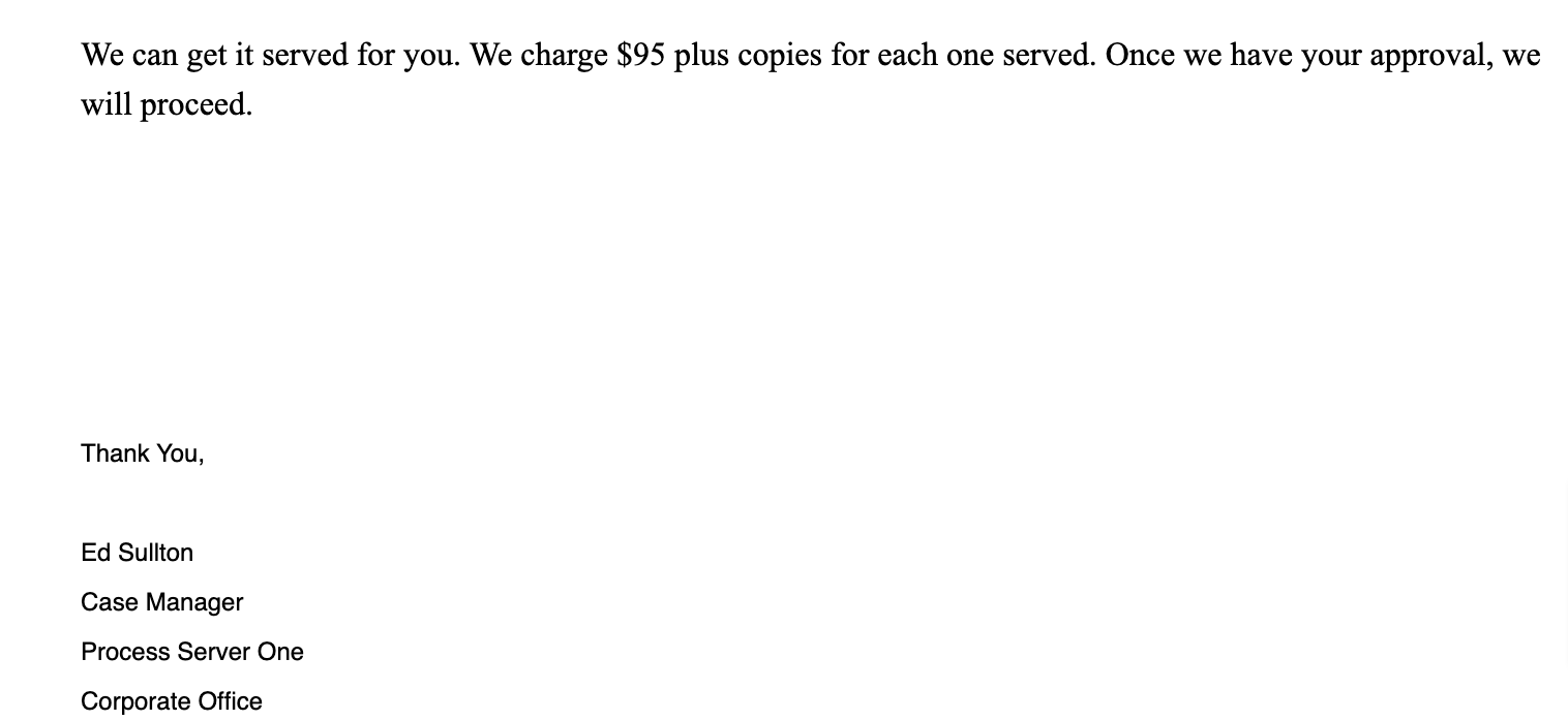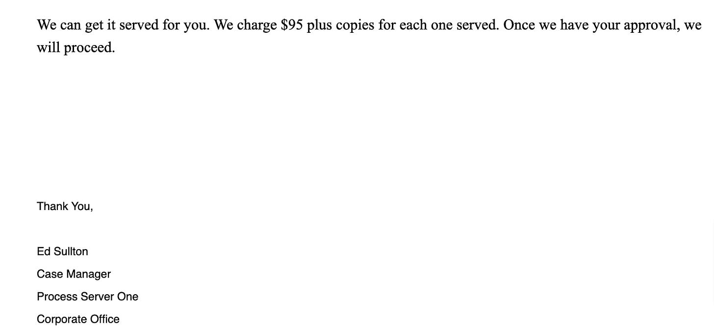 I have applied for permission to serve the elusive Marcus Goldfinch via publication or email, but in case that gets refused, I’m going to have papers delivered to Marco Polo’s address in Illinois. Total cost of only $95( donate here to support this. Thanks! ):